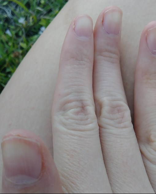 Известно, что хроническая патология внутренних органов может приводить к изменениям со стороны кожи и ее придатков - волос и ногтей. Сейчас, к большому сожалению, врачи практически не уделяют этому внимания, полагаясь на самые современные методы обследований. Можно сказать, что "лечат анализы" а не пациента, забывая, что все самые современные методы обследований имеют определенные ограничения обусловленные чувствительностью и специфичностью, а многие аппаратные методы диагностики ограниченны опытом, внимательностью и знаниями врача, который их проводит, то есть "операторозависимы". Всем врачам хорошо известно понятие ''печеночные ладони'' или пальмарная эритема. Но, почему-то, мало кто на них обращает внимание. Никакой технической сложности в оценке этого симптома нет. Диагноз по нему не поставить, но его наличие может определить дальнейшие шаги по диагностике. Давно описаны изменения ногтей встречающиеся при хронической патологии печени. На улицах наших городов можно часто встретить людей с белыми ногтями, но это, так сказать, крайние варианты. Здесь хочу предоставить фотографии так называемых ногтей Терри (кликабельно), которые чаще всего встречаются при диффузных заболеваниях печени, особенно алкогольной этиологии. В настоящее время для диагностики ногтей Терри применяются критерии уточненные Хользбергом (Holzberg) в 1984 году. Ложе ногтя может быть не только белым, но и бледно розовым с дистальной полоской от 0.5 до 3 мм., коричневого, светло-коричневого или розового цвета, лунула может как определяться, так и отсутствовать, сливаясь по цвету с ложем ногтя. Как правило, вначале более заметны изменения ногтей большого и указательного пальцев. Характерна симметричность изменений. И хотя сейчас ногти не являются диагностическим критерием, однако они могут помочь направить мысль врача по пути к установлению правильного диагноза. "Сплит симптом" или симптом "занозы" - тонкая вертикальная темная полоска на ногте напоминающая волосок, встречается гораздо реже.