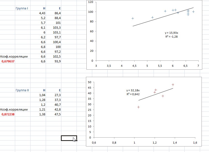 - достоверность линейной аппроксимации (линия тренда проходит через 0,0: E=kH) - коэффициент корреляции. Не нравятся: - то, что R^2 <0 в первом случае (что это может означать связь E=kH - не достоверна?) - во втором случае связь между колонками без p Помогите пожалуйста "онаучить" мои попытки. Как правильно обработать связь между двумя колонками? Хотелось бы в итоге корреляционную связь дать на уровне какой-либо значимости. СПАСИБО p.s. Как сделали вот эти авторы (второй рисунок) и откуда они p взяли? Пишут, что методом линейного регрессионного анализа (третий рисунок). Сообщение отредактировал Choledochus - 25.10.2009 - 11:50 |