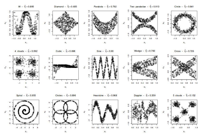 The Hellinger Correlation, конечно же https://arxiv.org/abs/1810.10276 https://cran.r-project.org/web/packages/HellCor/index.html А неплохо ("естественные группировки" он за корреляции не признает, что вполне даже логично и хорошо для разборок с ложными к.к.) ![]() |