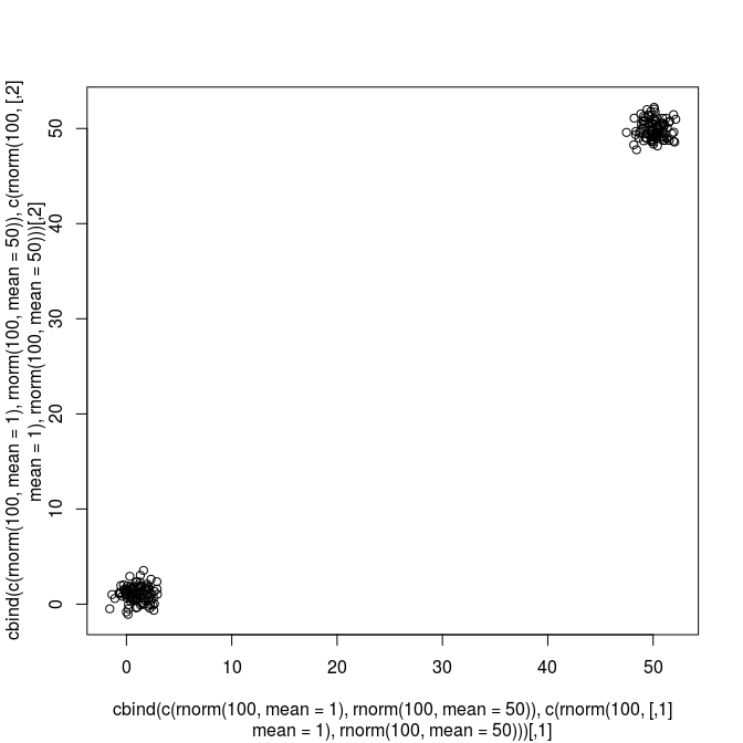 А неплохо ("естественные группировки" он за корреляции не признает, что вполне даже логично и хорошо для разборок с ложными к.к.) А вообще сосет > HellCor::HellCor(c(rnorm(100, mean=1), rnorm(100, mean=50)), c(rnorm(100, mean=1), rnorm(100, mean=50)) ) $Hcor [1] 0.8612872 $pvalue [1] NA Вот это корреляцией не называется, это "ложный к.к. вызванный естественной группировкой в данных" ![]() |
