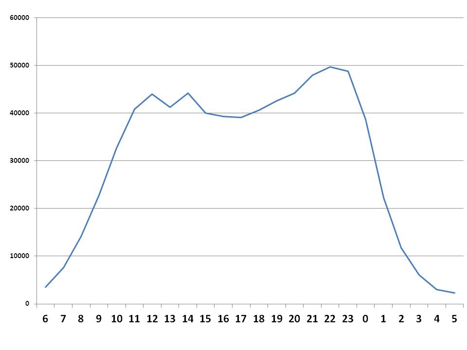 Позвольте задать вопрос, ответа на который не смог найти на форуме: Задача: Есть данные количества посещений веб-сервиса студентами по времени суток (т.е. по каждому часу суток количество посещений для каждого студента персонально). Есть результаты опроса этих студентов на предмет их предпочитаемого суточного ритма (т.е. сумма баллов в диапазоне от 0 до 25, отражающая континуум от "полного жаворонка" (0) до "полной совы" (25)) Нужно оценить корреляцию суточного ритма (точнее степени предпочтения "вечернести") по данным анкеты и суточного ритма посещений сайта. Вопрос: как же обработать данные о количестве посещений по часам? Мне пришло в голову только, что данные посещений по часам можно пересчитать с учетом часа и вычислить некую среднюю т.е. если 9ч утра - 5 посещений 10 - 7 11 - 8 и пр. то считаем так: ((9*5)+(10*7)+(11*8) и далее) / (5+7+8 и далее) получается некое значение ("средний час"??), корреляцию которого с данными опросника можно оценить. естественно, более корректно будет ввести дополнительную поправку, что сутки с точки зрения учебы начинаются не в 00.00, а с 6 утра (когда по общей статистике начинается нарастание количества посещений) и при перемножении умножать не на конкретный час (9,10,11 и далее), а на час отсчитанный от 6 утра (соответственно вместо 9,10,11 - 3,4,5). но в целом насколько корректен такой подход, мне не очень понятно. может быть есть еще какие-то варианты более корректной обработки подобных данных? тем более, что если посмотреть распределение посещений в целом, то там ясно прослеживаются два суточных пика - утром и вечером. В середине дня - снижение количества. Сообщение отредактировал ivan_m - 12.10.2013 - 16:20 |