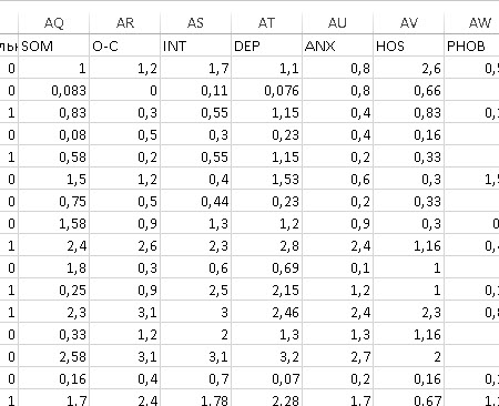 например , как на картинке в экселе в параметре SOM, там дробные числа. Однако, когда я делаю обработку в программе, то на выходе там только целые числа либо 0, либо 1. Почему так происходит? |