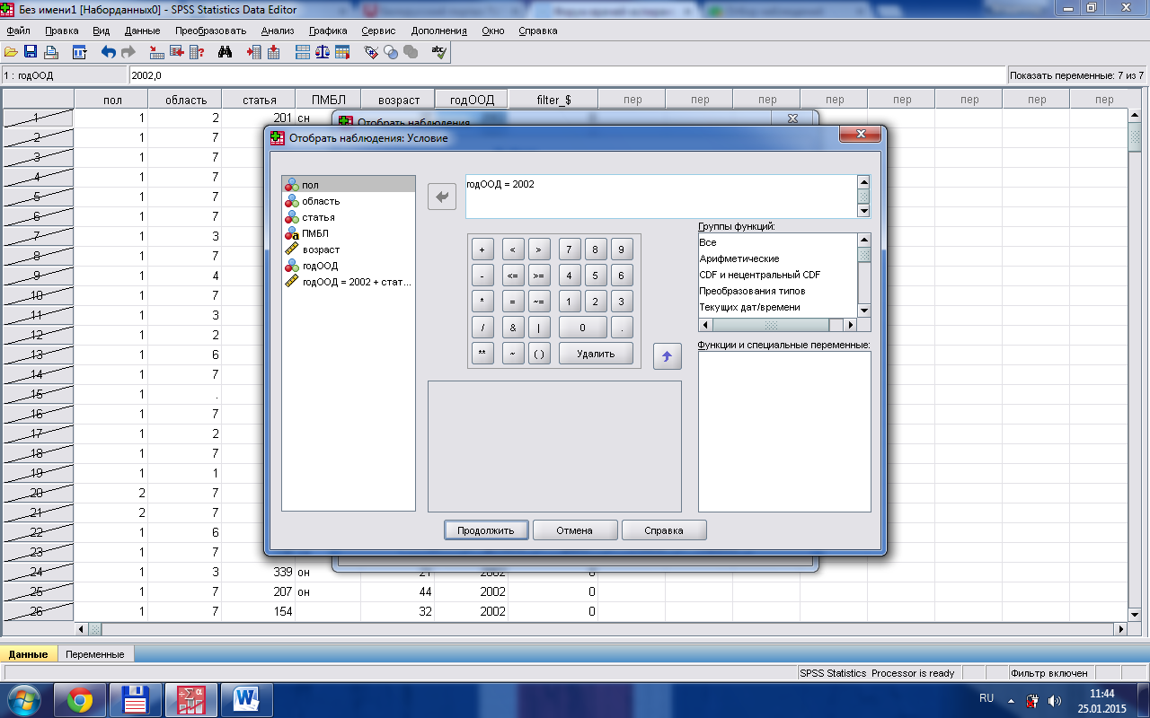 Добрый день. Подскажите пожалуйста как в функции "отбор наблюдений" в SPSS задать несколько критериев для отбора наблюдений? Например одновременно отобрать респондентов по году рождения и полу.