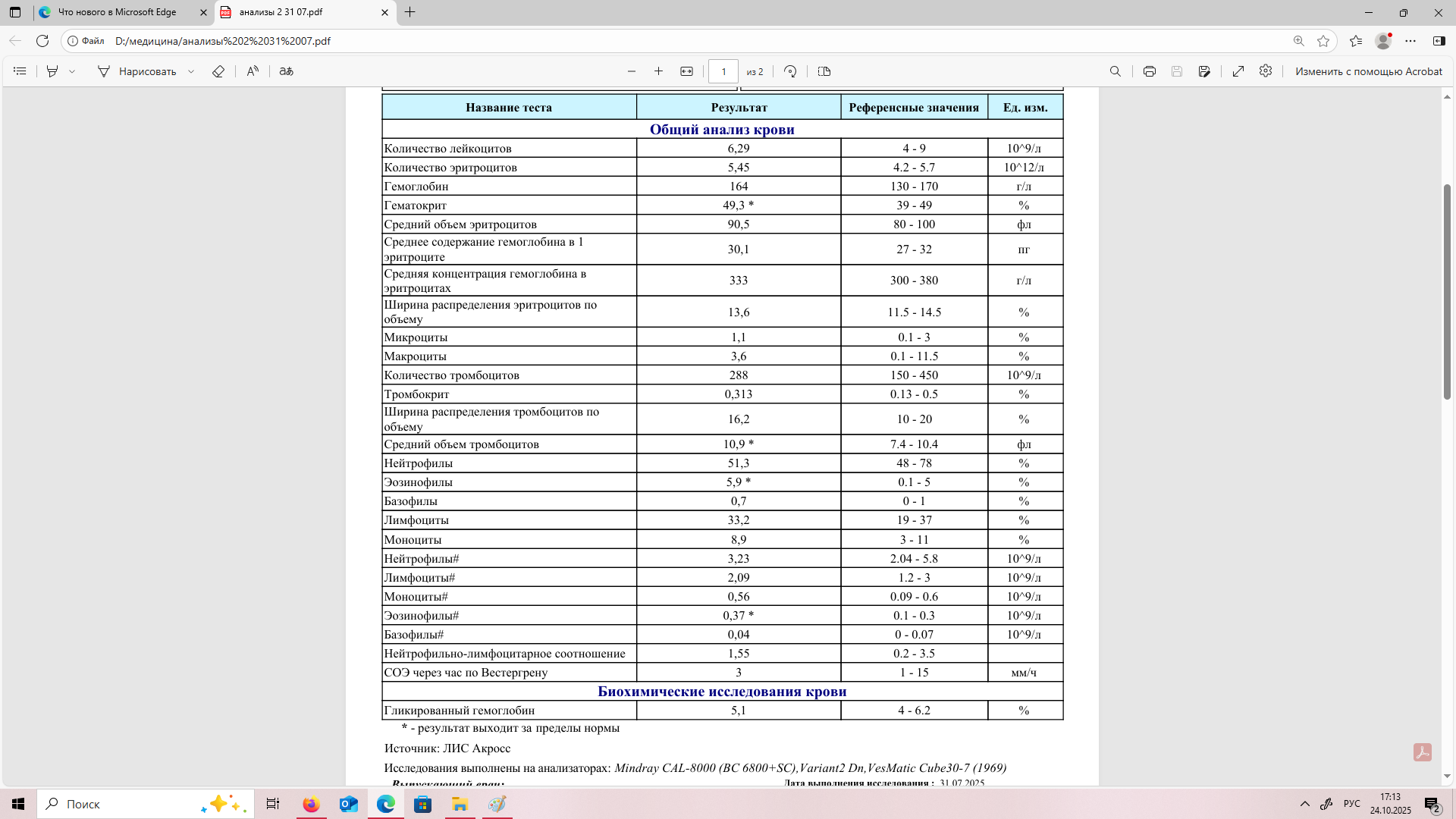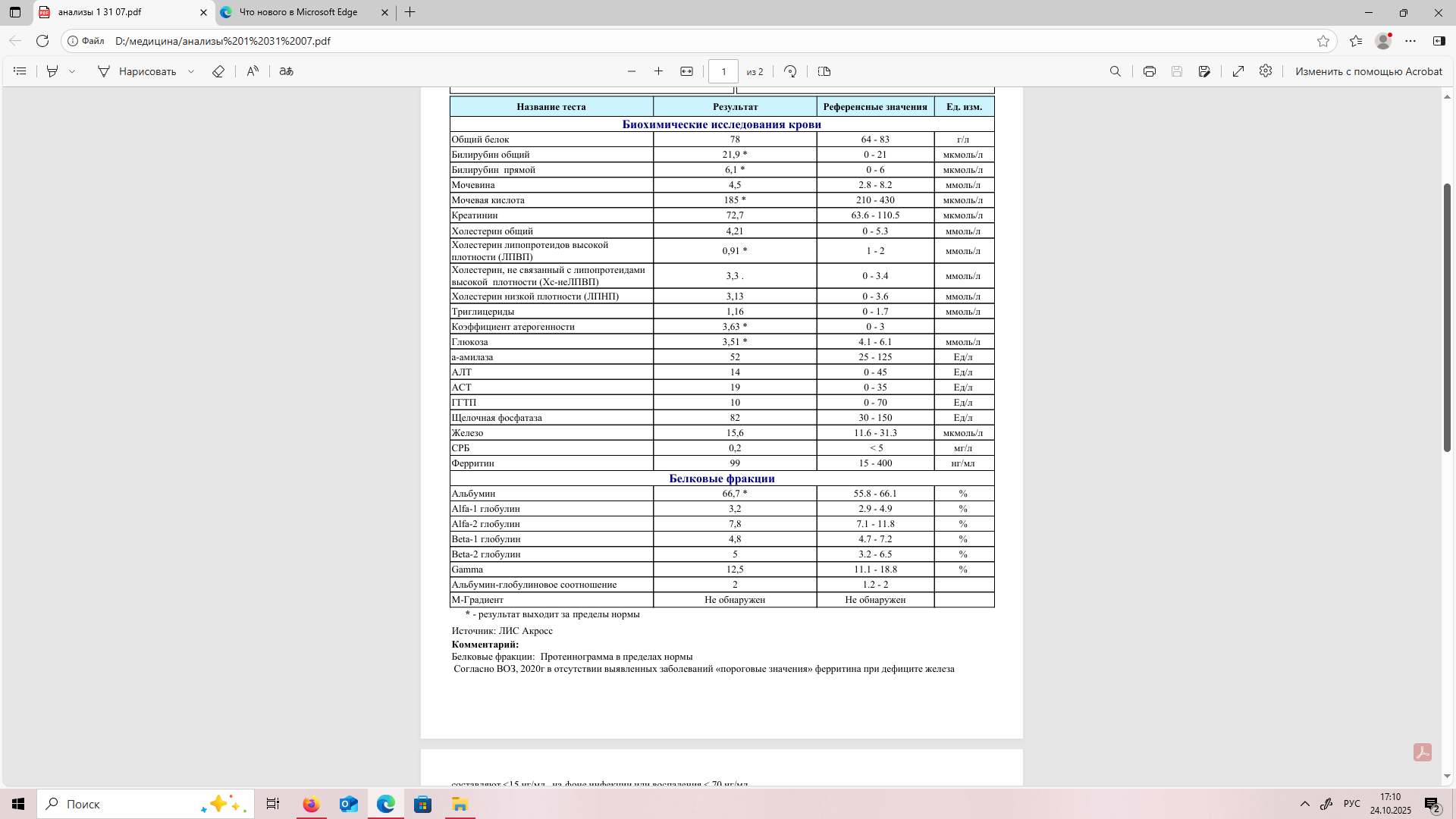 Доброго всем времени суток Lapin, искренне рад, что у Вас стало понятно, что конкретно нужно лечить! Теперь про себя (давно не писал, прошу прощения) С когнитивом и возвращением жуткой астении все плохо Были временные (как оказалось теперь) улучшения на фоне эмпирического применения NAC+ LoLa+ цитруллин+Л-Карнитин+Лактулоза, а также курса в/м инъекций мексидола и церебролизина. Далее ЛоЛу и NAC отменил, оставил лактулозу, цитруллиин (сейчас и его пока прекратил принимать) и Л-карнитин. В самом конце июля удалось сдать биохимию крови (аммиак пока нес давал, но у нас в городе только в венозной плазме смотрят, аппарата PocketChem нет ), прикрепляю. Тощаковая глюкоза низковата (может в течении дня падает из-за сниженной функции печени и поэтому сильная усталость и сонливость?) Затем сдавался ОАК, в котором гемоглобин стал еще выше- 172, эритроциты 5,62 (4,0-5,1 там референсные значения) и гематокрит 51,5%. Работники лаборатории спросили- курю ли я (нет), тогда говорят гипоксия Упал уровень общего тестостерона на 8 нмоль/ л и уровень ЛГ по сравнению с 4-летним результатом, полученным в этой же лаборатории... Инструментально пока, к сожалению, ни мозг, ни печень не исследовал. Стоит ли смотреть органические кислоты мочи или крови, что информативнее в моем случае? Ведь от LoLa моментального "вау" эффекта не было, но может у меня он в только связке с цитруллином работает? 2месяца ее пил и как только добавил "смесь " (NAC, л-карнитин, цитруллин)- резко стало лучше...накопительнвй эффект ЛоЛы или совпадение? Альфа кетоглутаровой кислоты от Kirkman нигде нет, подойдет обычный аргинин АКГ из спортпита ?(как заменаЛоЛы из-за финансовых соображений). Лактулозу сейчас принимаю 45-70 мл в сутки, но ёё не хватает. А может и не в том направлении копаю Или это просто эндогенное психическое заболевание, например, простая шизофрения без продуктивной симптоматики с жесткой астенией и снижением когнитива (названная Эмилем Крепелиным преждевременным слабоумием- "Dementia praecox") ? Да, есть исследования, показывающие, что шизофрения развивается у лиц синдромом Жильбера чаще, более того у больных шизофренией с синдромом жильбера она протекает тяжелее и биохимический дисбаланс (N-ацетил аспартат, миоинозитол) при выполнении МР-спектроскопии головного мозга сильнее выражен именно у пациентов, страдающих шизофренией и жильбером, в сравнении с "чистой" шизофренией. https://www.researchgate.net/publication/38...e_A_Case_Report https://pubmed.ncbi.nlm.nih.gov/37390966/ https://pubmed.ncbi.nlm.nih.gov/11105741/ https://pubmed.ncbi.nlm.nih.gov/17561669/ https://pubmed.ncbi.nlm.nih.gov/24941364/ https://pubmed.ncbi.nlm.nih.gov/15504421/ И еще: подозревая печеночный генез энцефалопатии, мы можем увидеть хоть что-то относительно специфичное для нее на МРТ головного мозга в обычном режиме ?В интернете написано, что мрт в режиме подавления сигнала от жировой ткани позволяет увидеть изменение интенсивности сигнала от подкорковых ядер. Кстати, в исследованииях Рифаксимина говорится, что полностью купирует симптомы минимальной печеночной энцефалопатии при непрерывном круглогодичном приеме в дозе 1200 мг/сут только у 60% пациентов. Но на крысах тестируют стероидный агонист ГАМК рецепторов для лечения печеночной энцефалопатии: https://pmc.ncbi.nlm.nih.gov/articles/PMC9532914/ Можно ли нам с СЖ препараты на основе алколоидов спорыньи и остатка никотиновой кислоты (Ницерголин, Сермион) для улучшения мозгового кровообращения ? Ocean_ovna, жду Вашего комментария и всех, ж
