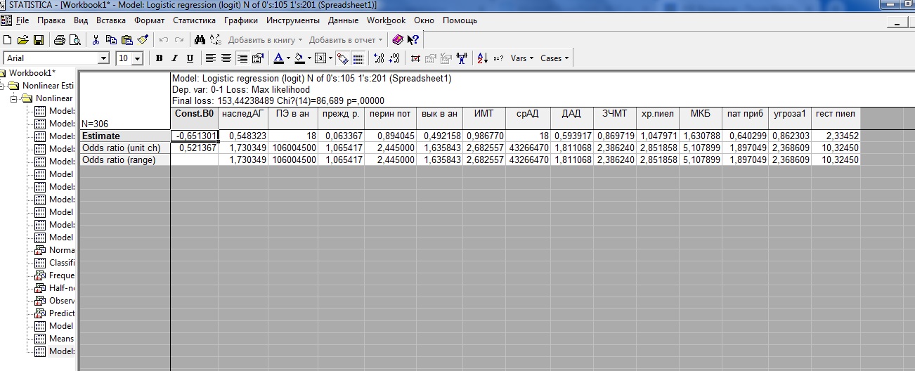 , пожалуйста, интерпретировать полученные данные в программе Statistica. Благодаря вашему форуму получилось разобраться в проведении бинарной логистической регрессии в этой программе по нескольким независимым переменным (считаю факторы риска развития ПЭ у беременных), дошла до интерпретации, ничего не понятно. Какой фактор имеет большее влияние?